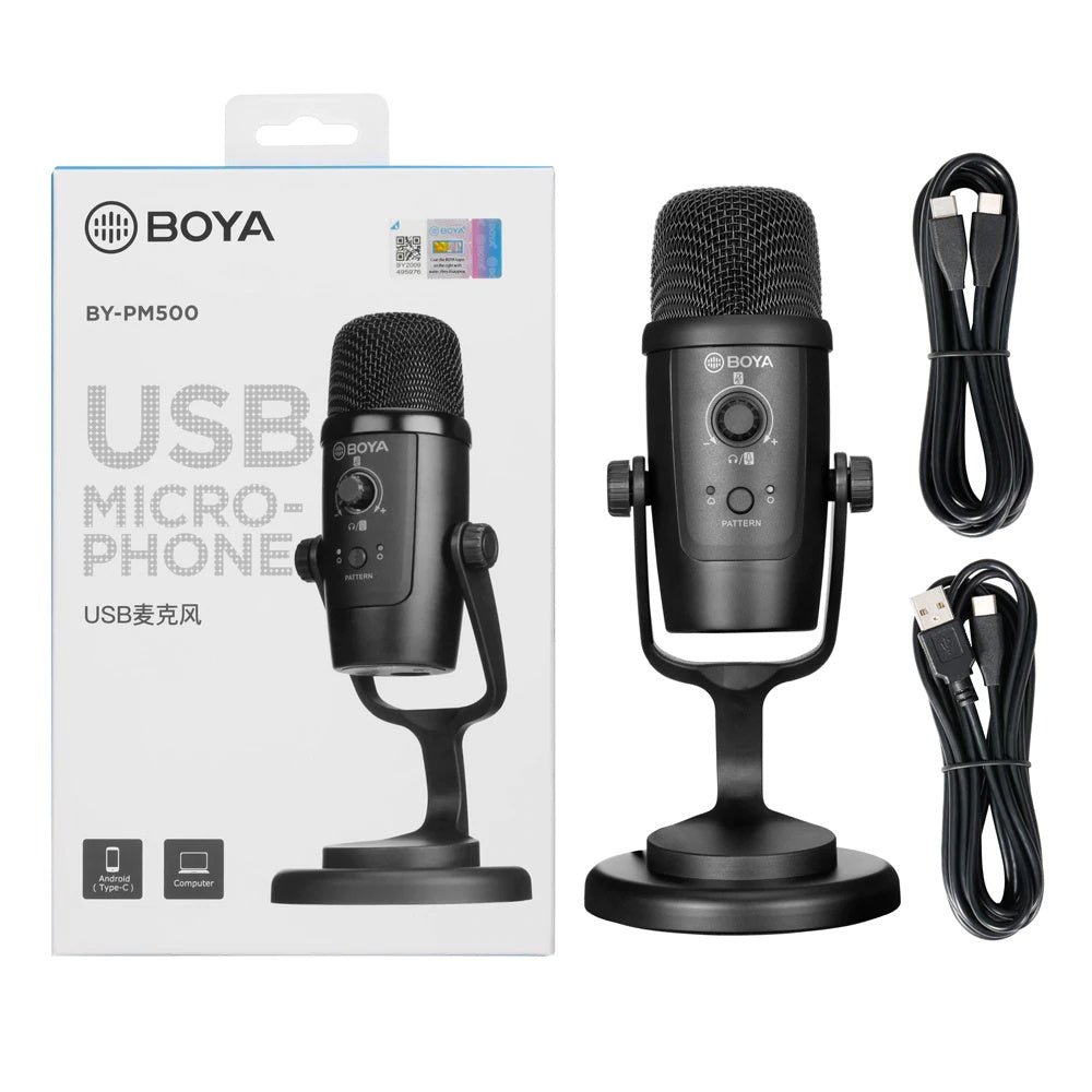 Le BOYA BY-PM500 est un microphone USB polyvalent compatible avec les ordinateurs Windows, Mac et la plupart des appareils de type C. Avec une réponse fluide et à large spectre, ce microphone offre une qualité sonore exceptionnelle grâce à sa résolution de 24 bits/48 kHz. Le BOYA BY-PM500 propose deux polarités sélectionnables, cardioïde et omnidirectionnelle, permettant une grande flexibilité dans différents environnements d’enregistrement. Il est équipé d’une fonction de muting et d’une prise casque 3,5mm pour un monitoring sans latence.
