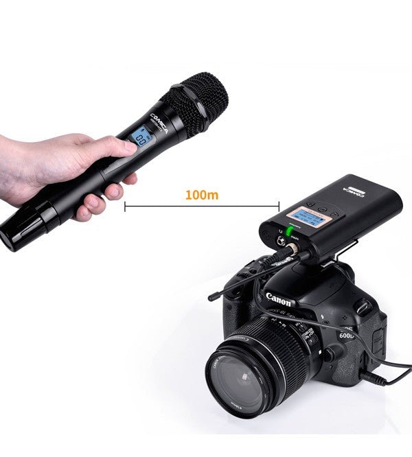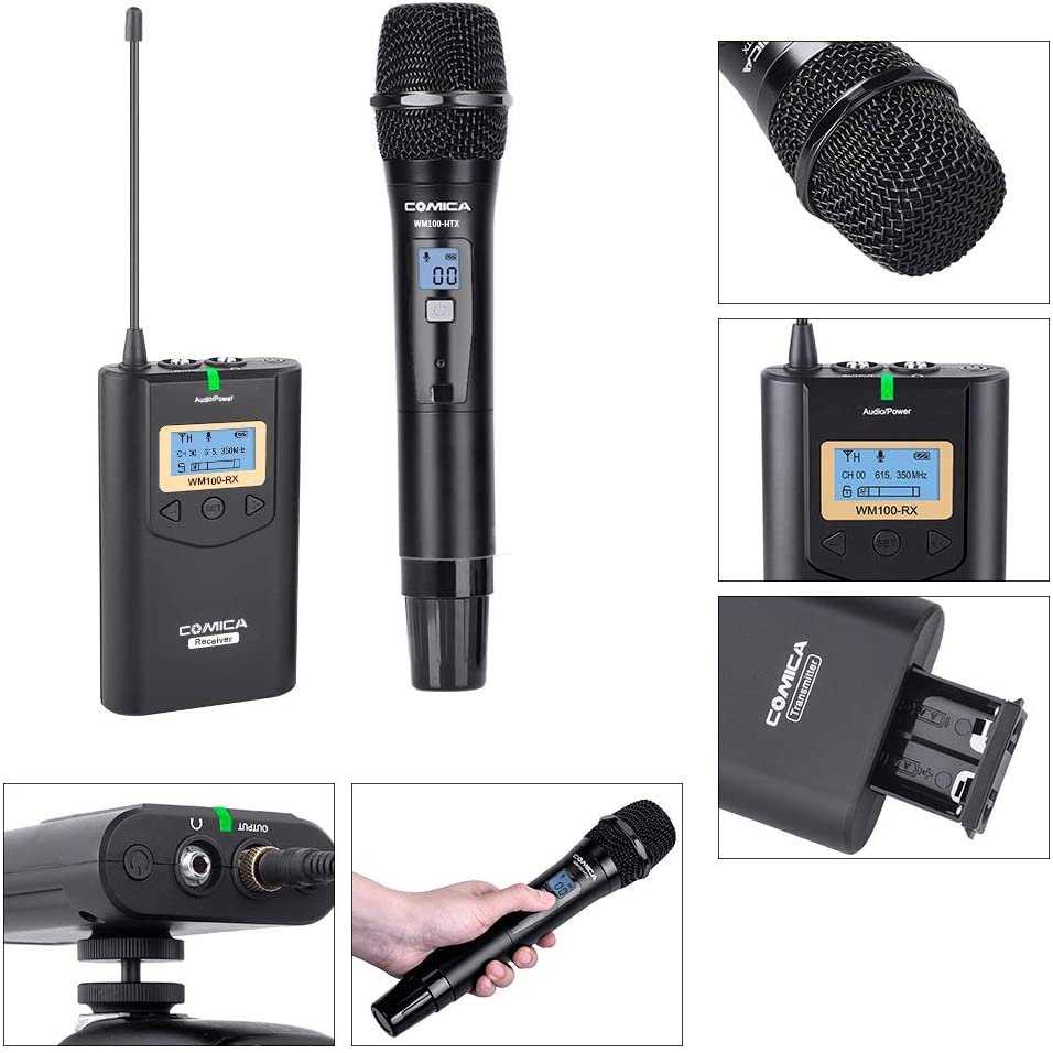 Le Comica WM100 (H) offre une solution sans fil de haute qualité pour capturer un audio clair dans divers environnements. Avec ses 48 canaux UHF, ajustables pour éviter les interférences, et une portée impressionnante de jusqu’à 328 pieds, ce microphone garantit une performance fiable, même dans les grandes scènes. Son écran LCD haute résolution offre une interface claire et économe en énergie, facilitant la surveillance en temps réel du son au niveau du récepteur. Que vous réalisiez des vidéos YouTube, des mariages, des interviews ou des diffusions en direct, le Comica WM100 (H) est compatible avec une large gamme d’appareils, des reflex numériques aux smartphones, offrant une solution polyvalente pour les professionnels et les débutants de la vidéographie.