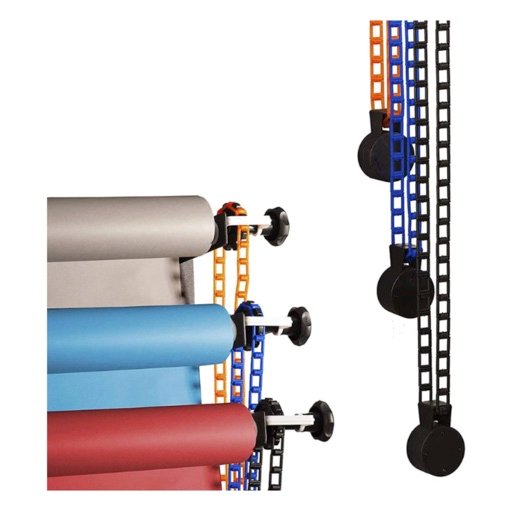 - Chaînes Vertes, Orange et Bleues : Les chaînes incluses dans le kit sont de différentes couleurs : vertes, orange et bleues. Cette différenciation visuelle aide les utilisateurs à identifier facilement chaque fond, rendant l’organisation du studio plus intuitive.